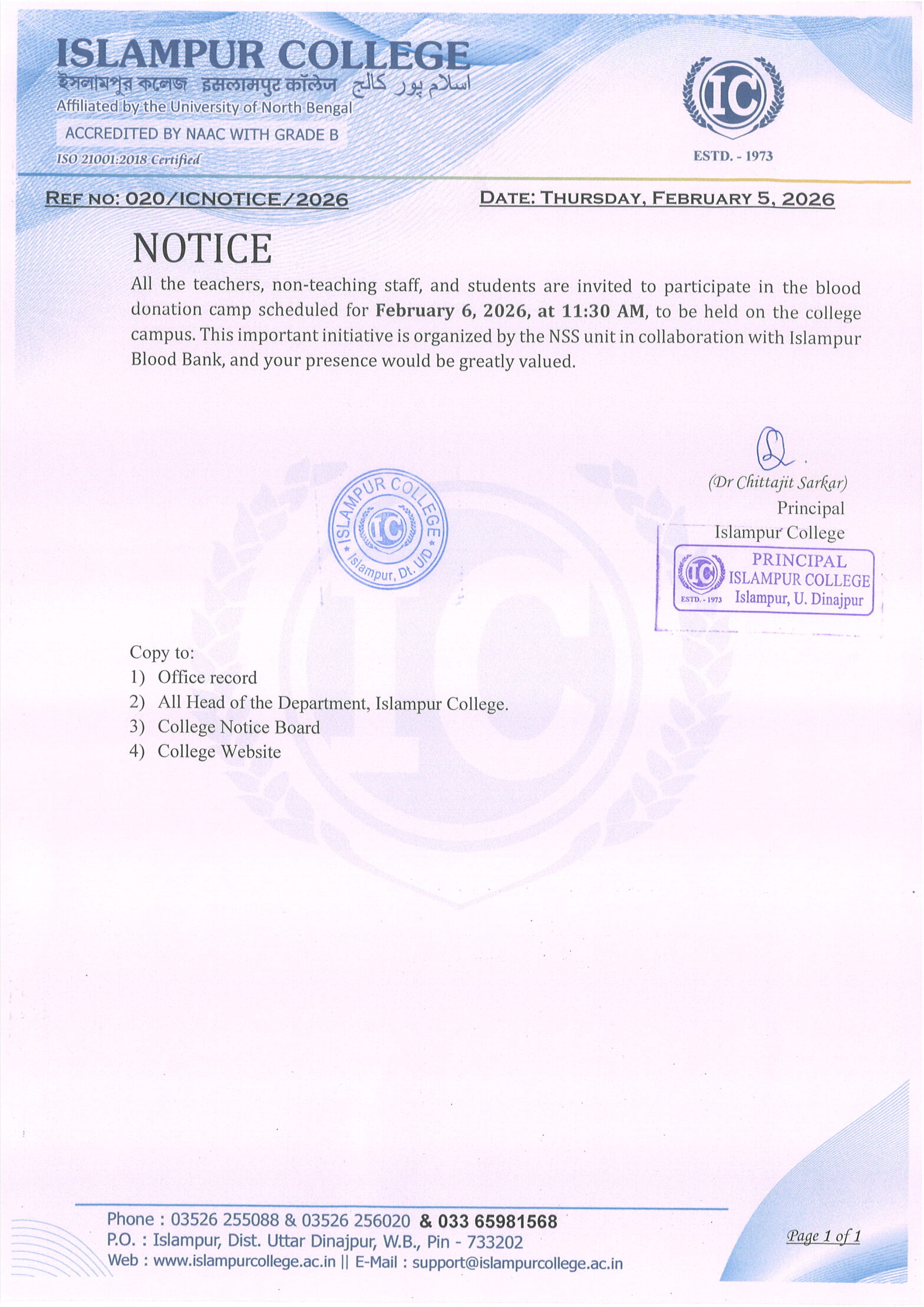 Estd : 1973. Affiliated to University of North Bengal (State University)