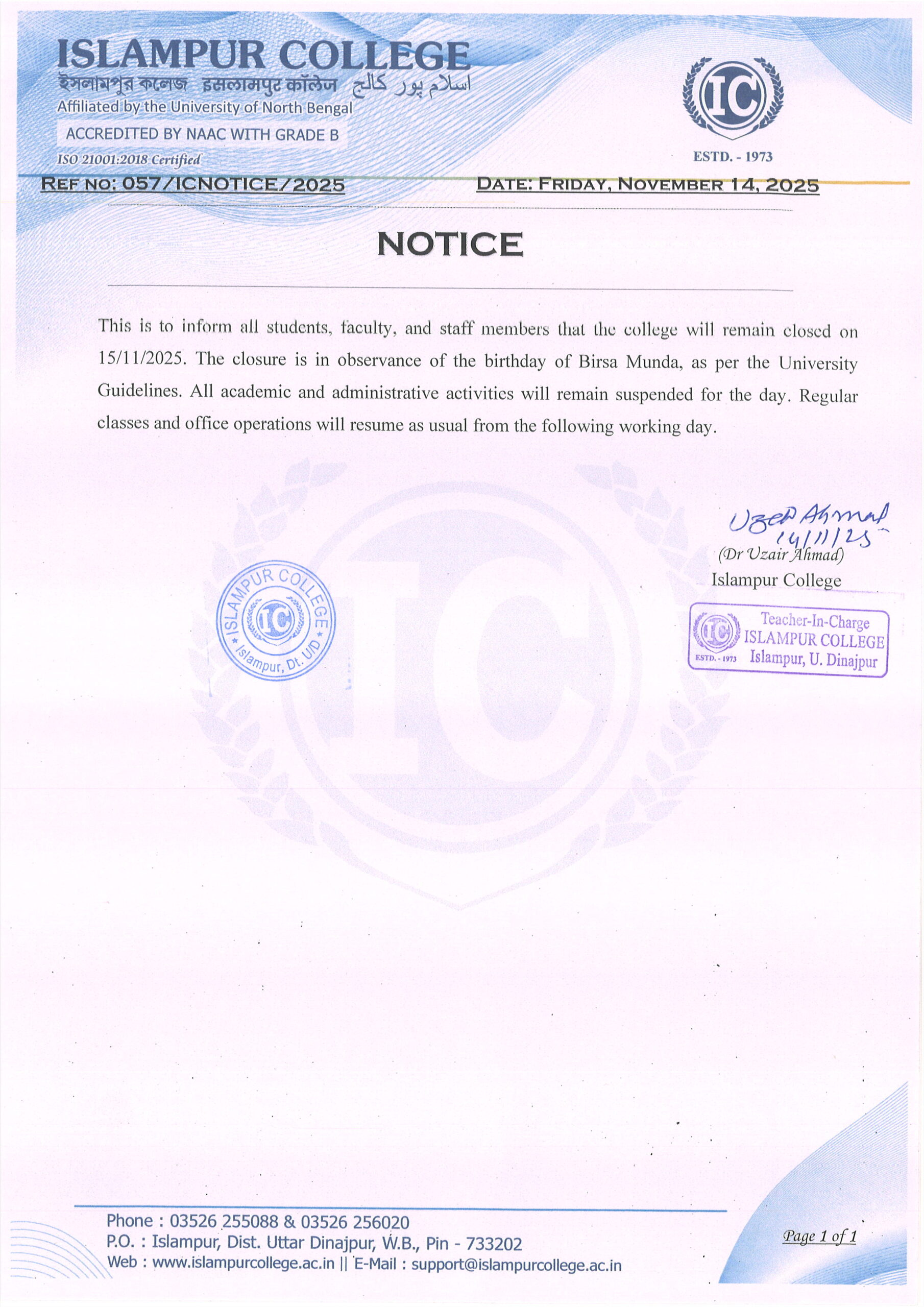 1st/3rd/5th Semester, 2025 Internal Examinaiton Schedule