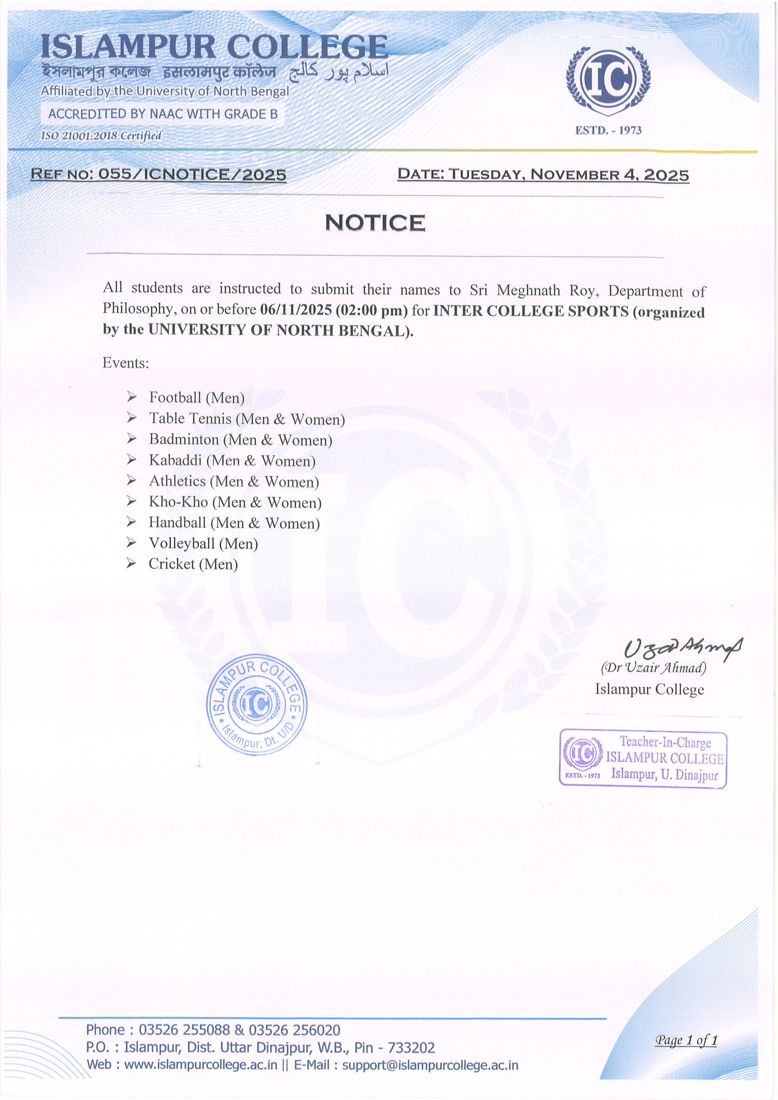 Estd : 1973. Affiliated to University of North Bengal (State University)