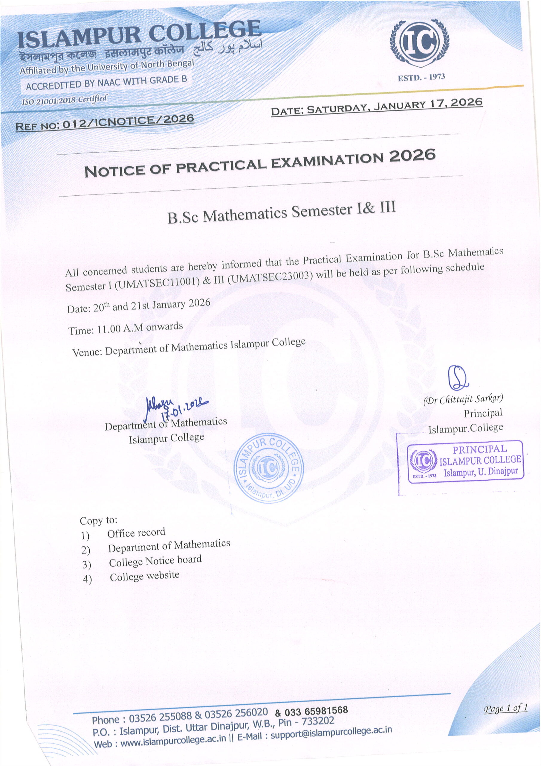 Mathematics Practical Examination – Islampur College