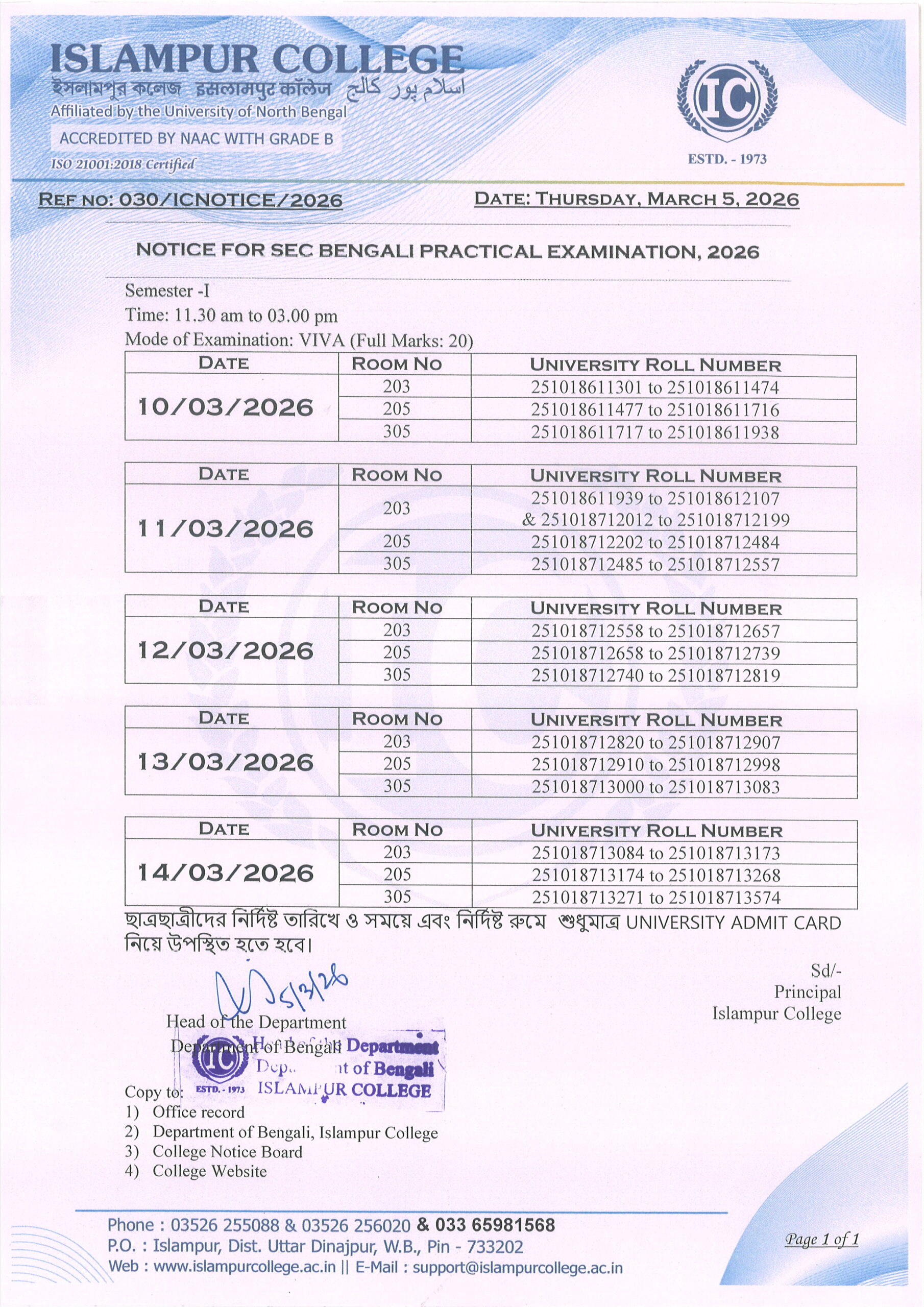 1st Semester, 2025 ID Card Distribution List