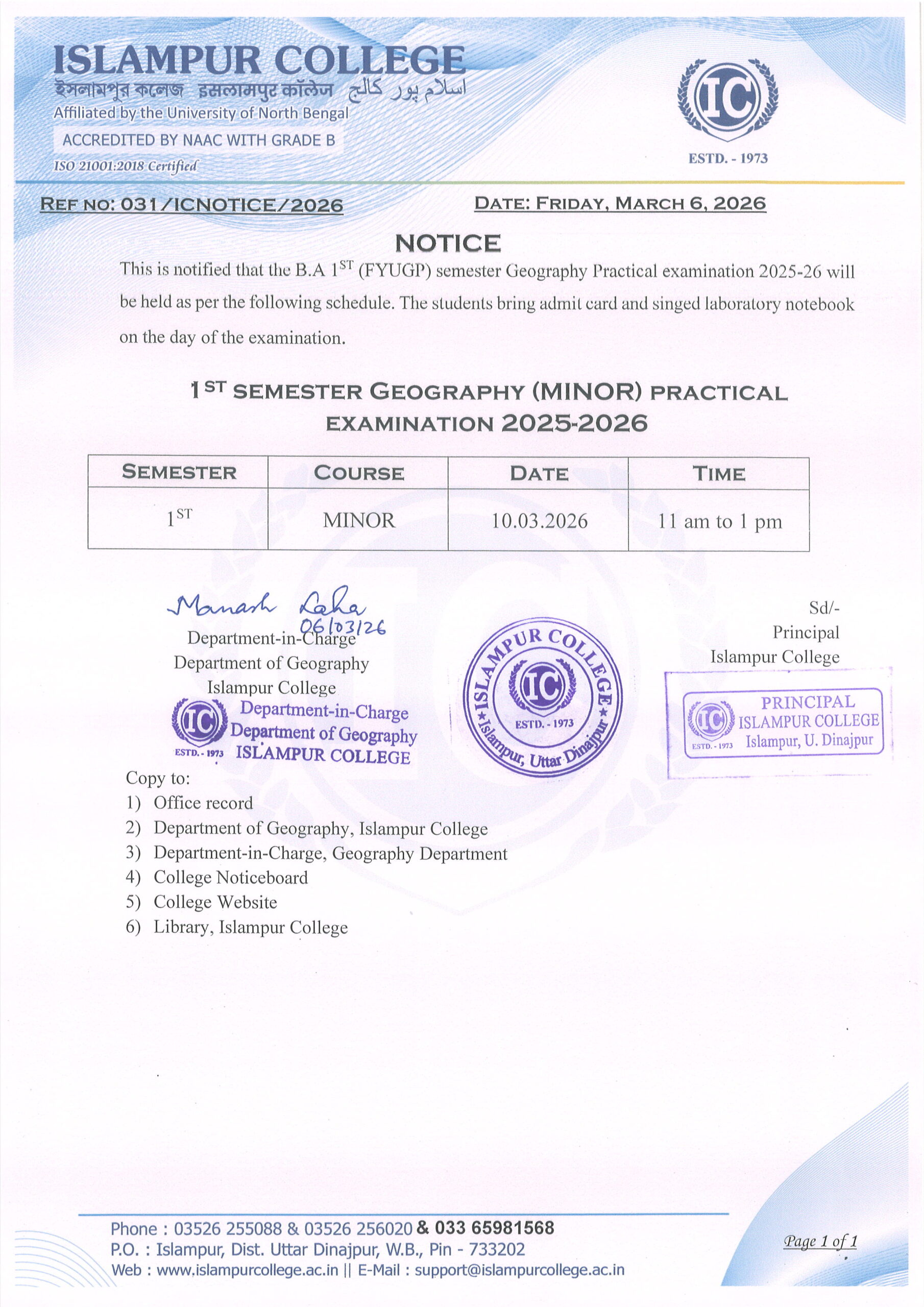 1st Semester Chemistry Practical, 2025