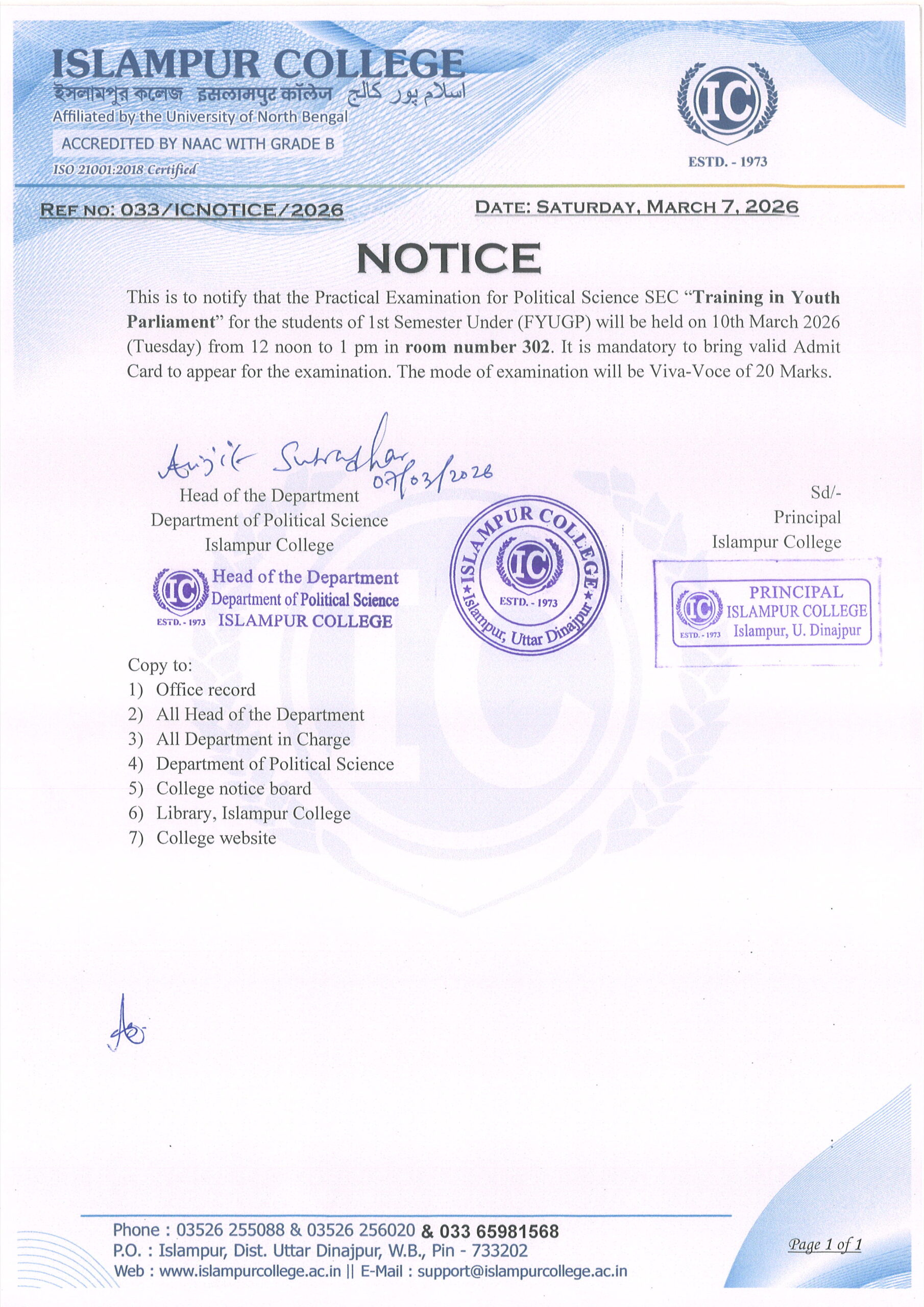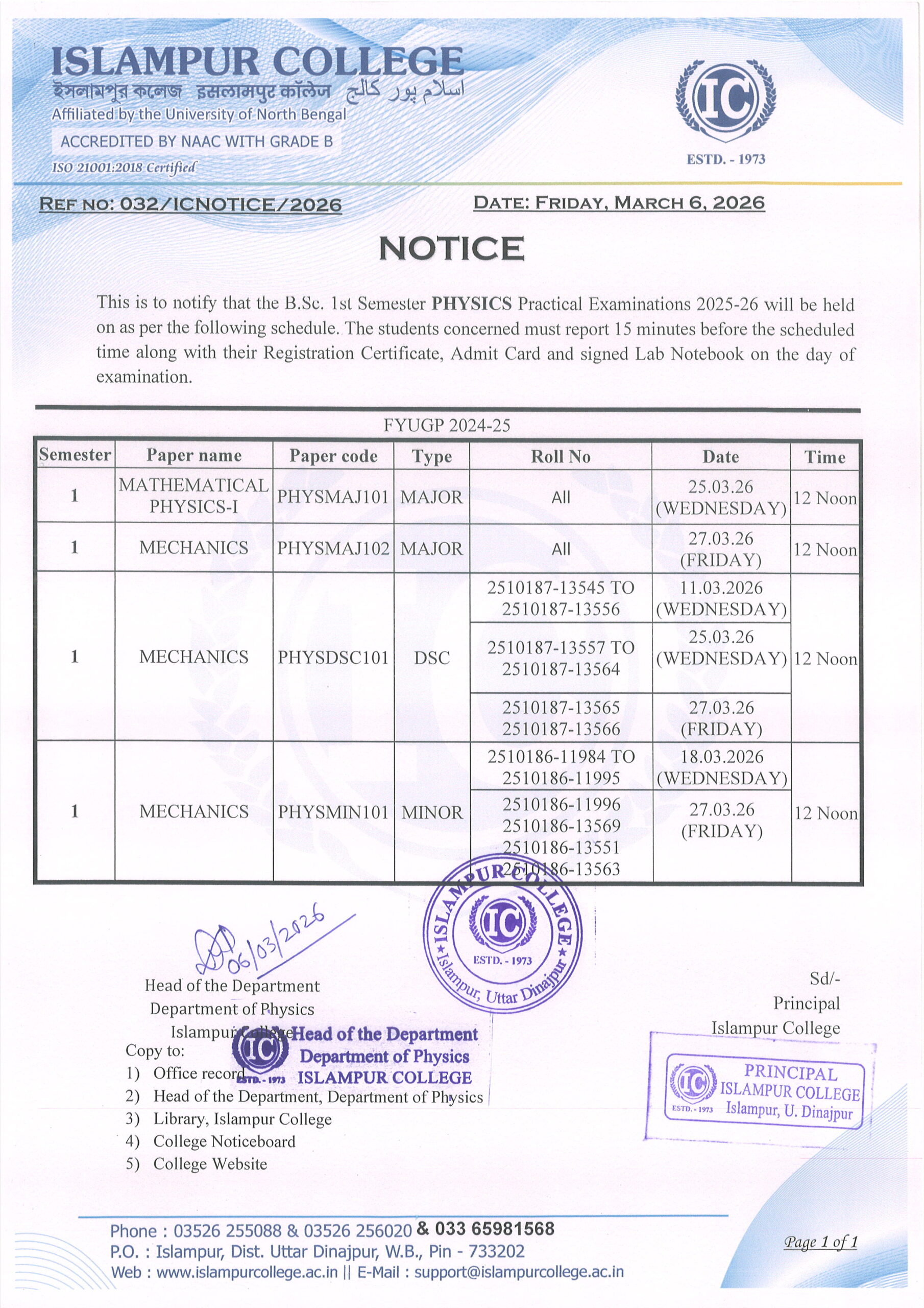 All Practical Examinaiton for 1st Semester