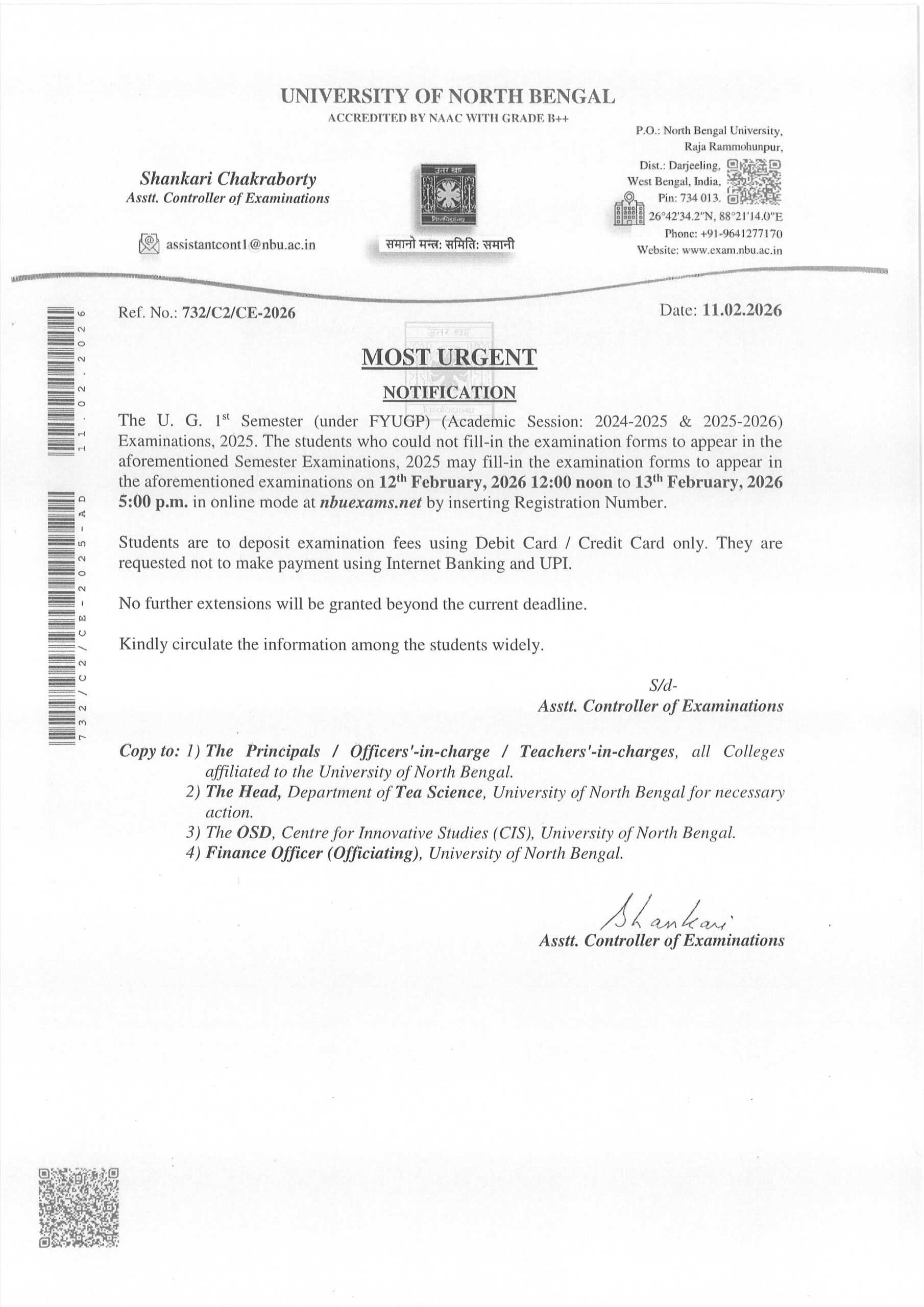 University Examination Form Fillup Additional Dates
